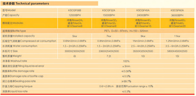 一、概述: 水灌裝機可以完成清洗瓶、灌裝、封口等工序,廣泛應 用于生產塑料瓶裝礦泉水、純凈水、酒精飲料和其他非氣體飲料。該 系列全自動灌裝機可有效的提高生產能力和經濟效益,***滿足瓶裝 飲用水企業的需求。 二、產品特點: ?整機采用模塊化設計,電器均采用國內外一線品牌。 ?沖瓶單元采用優質不銹鋼材,實現對瓶內、瓶外壁和瓶口高壓沖 洗,確保沖洗無死角。 ?灌裝單元采用國外***技術,灌裝速度快,精度高,拆卸維護方 便。 ?封口單元采用廣泛使用的塔式傳動機構,封口頭借鑒國外公司技 術,確保封口率。 ?理蓋單元采用目前國內外***的瀑布式提升理蓋結構,噪音小,蓋 損低。 ?蓋清洗單元用沖瓶水將瓶蓋進行清洗、壓縮空氣噴沖殘留液滴,保 證瓶蓋有效清洗。 三、技術參數: