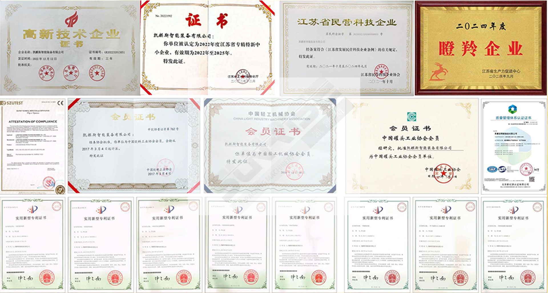 公司設計研發實力:凱麒斯設計團隊全部采用CAD、CAXA、SOLIDWORKS設計繪圖軟件,并應用三維繪圖軟件進行產品研發設計,技術人員全部為大專及以上人員,均有著多年的機械及整線工程設計經驗,經過不斷努力及研發創新,目前公司的產品技術水平處于同行業領 先水平,研發制作并成熟定型的產品有百余種。公司相關產品的市場占有率已遙 遙 領 先。目前公司已有十幾項產品獲得國家專利證書。同時,公司長期聘請河北科技大學、河北大學、北京工業大學、湖南大學的資 深專家為公司顧問,指導公司在食品飲料包裝生產線設備方面產品的研發、設計,并與河北科技師范學院建立“產”“學”“研”合作關系,為公司長遠發展奠定了堅實的基礎。